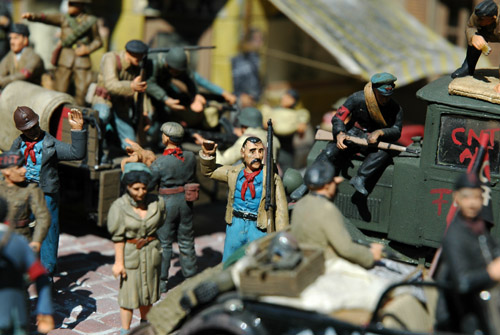 Als Fortsetzung seines politischen Engagements en miniature betrachtet Matthias Schmeier seine Dioramen, in denen er politische Ereignisse im Maßstab 1:35 modelliert. Abseits der „heilen Welt“ von Eisenbahnmodellbau-Landschaften, cleanen Architekturmodellen und klassischen Tierdioramen inszeniert der heute 46-jährige Kölner Geschichtslehrer eine Hausbesetzung in Kreuzberg, ein Flüchtlingsdrama in Südostasien, Straßenkämpfe in Beirut und Belfast oder den Prager Frühling 1968, die Münchener Räterepublik und den Spanischen Bürgerkrieg. Schmeier selbst schaut auf eine politisch bewegte Vergangenheit als linker Aktivist in Köln und Hamburg zurück. Einige Szenerien seiner Modelle hat er hautnah miterlebt – ob als Hausbesetzer, unterwegs als Autonomer im schwarzen Block oder als Atomkraft-Gegner.